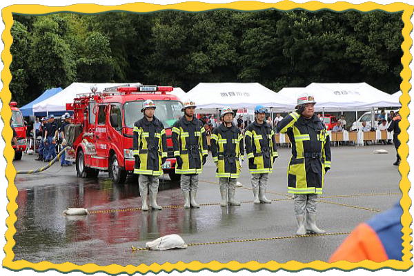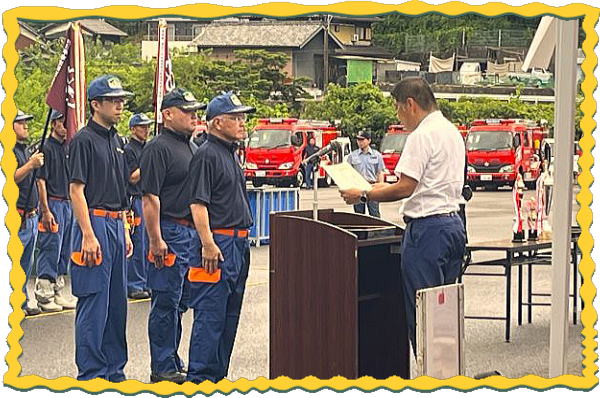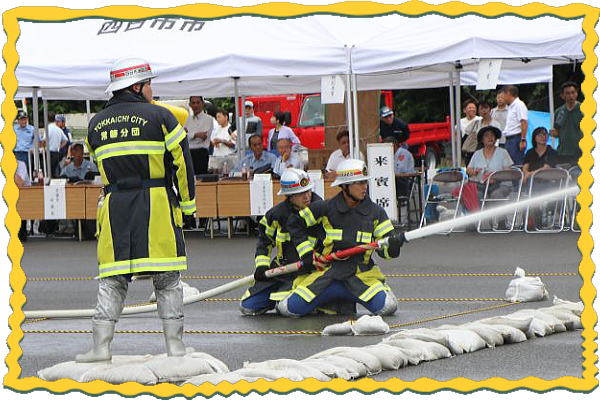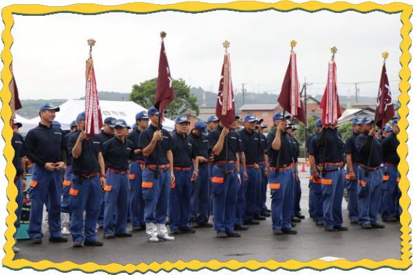 競技は5人編成で、ホースの延長から7~9メートル先にある3箇所の的に放水する競技で、 一連の動作のスピードや行動の正確性などを競い合いました。 私たちの”常磐分団”もこの競技会に向けて日々、昼間・夜間訓練を重ねて競技会に臨み、 初めて栄えある入賞を果たすことが出来ました。 昨今、各地で相次ぐ地震、ゲリラ豪雨など、自然災害が猛威をふるって、私たちの生活は 常に危険と隣り合わせであります。 このような状況の中、地域で活動している消防分団の皆さんは私たち住民の安心・安全を 守るために日々、様々な訓練に励んでおり、そして火災・水害活動や防災啓発活動にご尽力 頂いております。